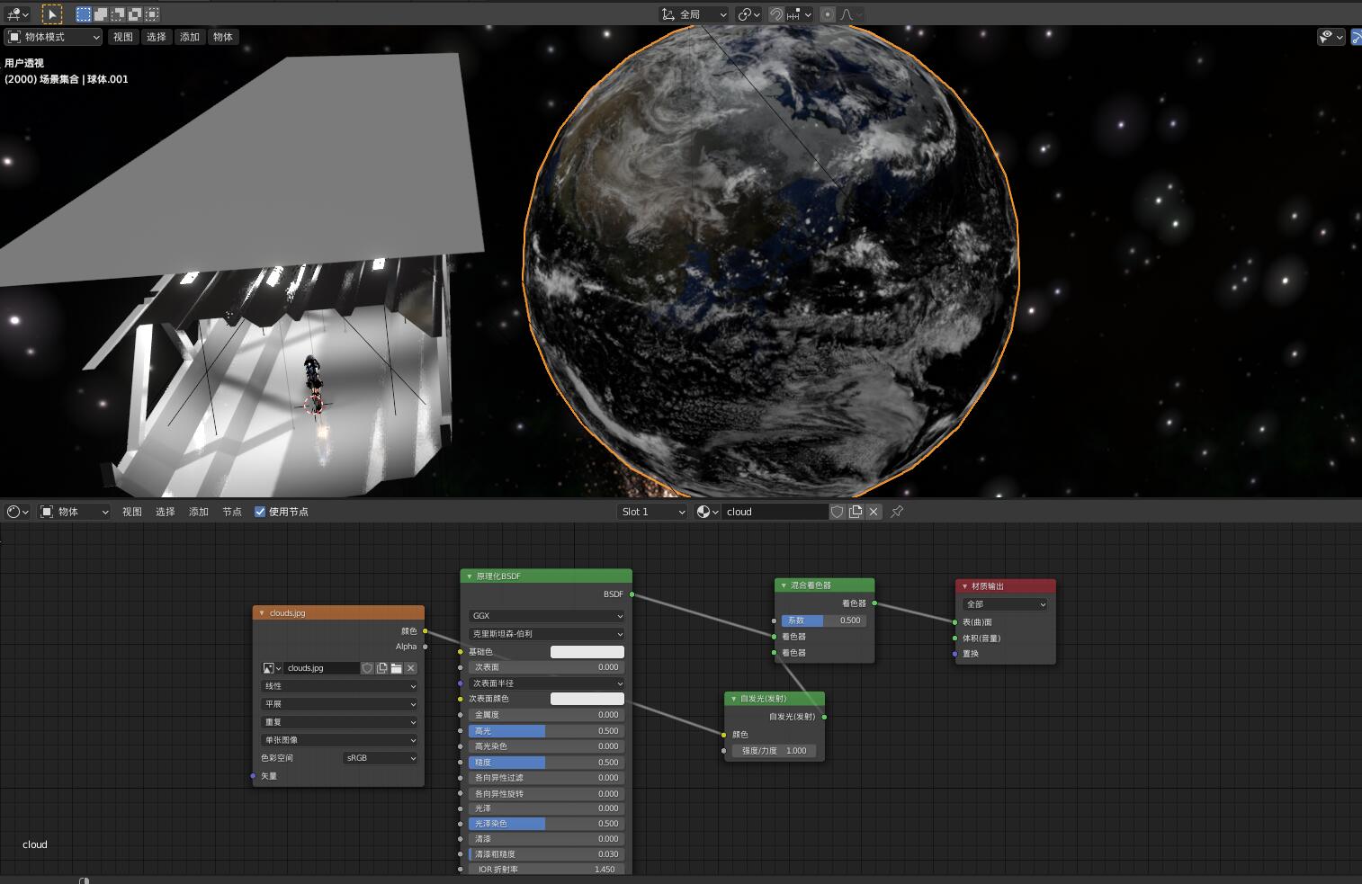 地球用了两层,里面是uv贴图做的